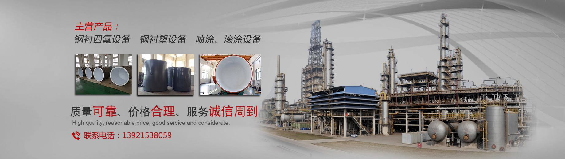 我公司專業(yè)生產(chǎn)防腐設備,主要產(chǎn)品有:鋼襯四氟、鋼襯四氟儲罐、反應釜內襯四氟、鋼襯四氟管道,四氟換熱器、PTFE襯里設備、鋼襯塑儲罐、鋼襯塑管道、攪拌槳等等。產(chǎn)品可應用于化工、氯堿、海水淡化、印染、顏料、儲運、電廠、稀土、冶金、電子、制藥、釀造等行業(yè)...